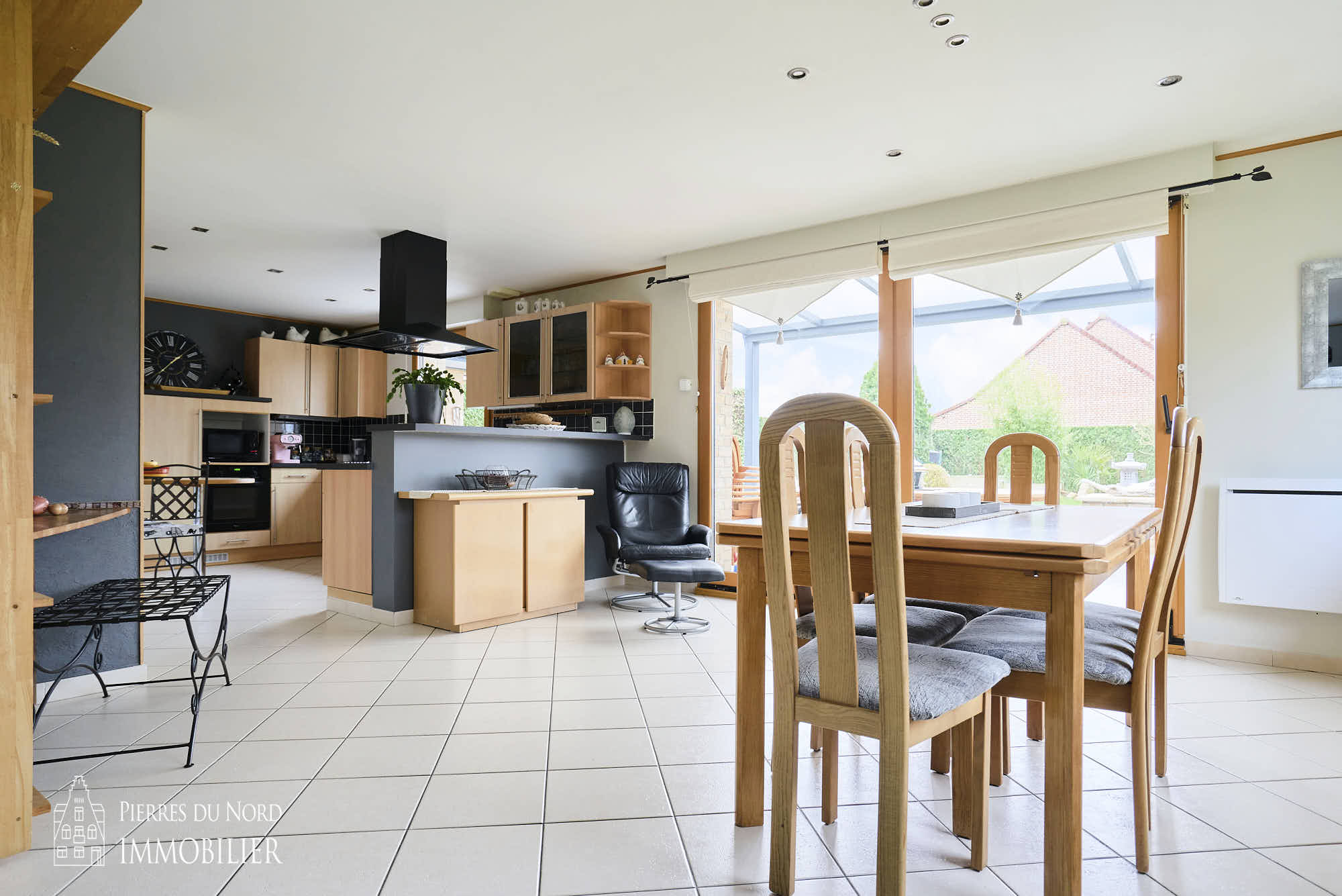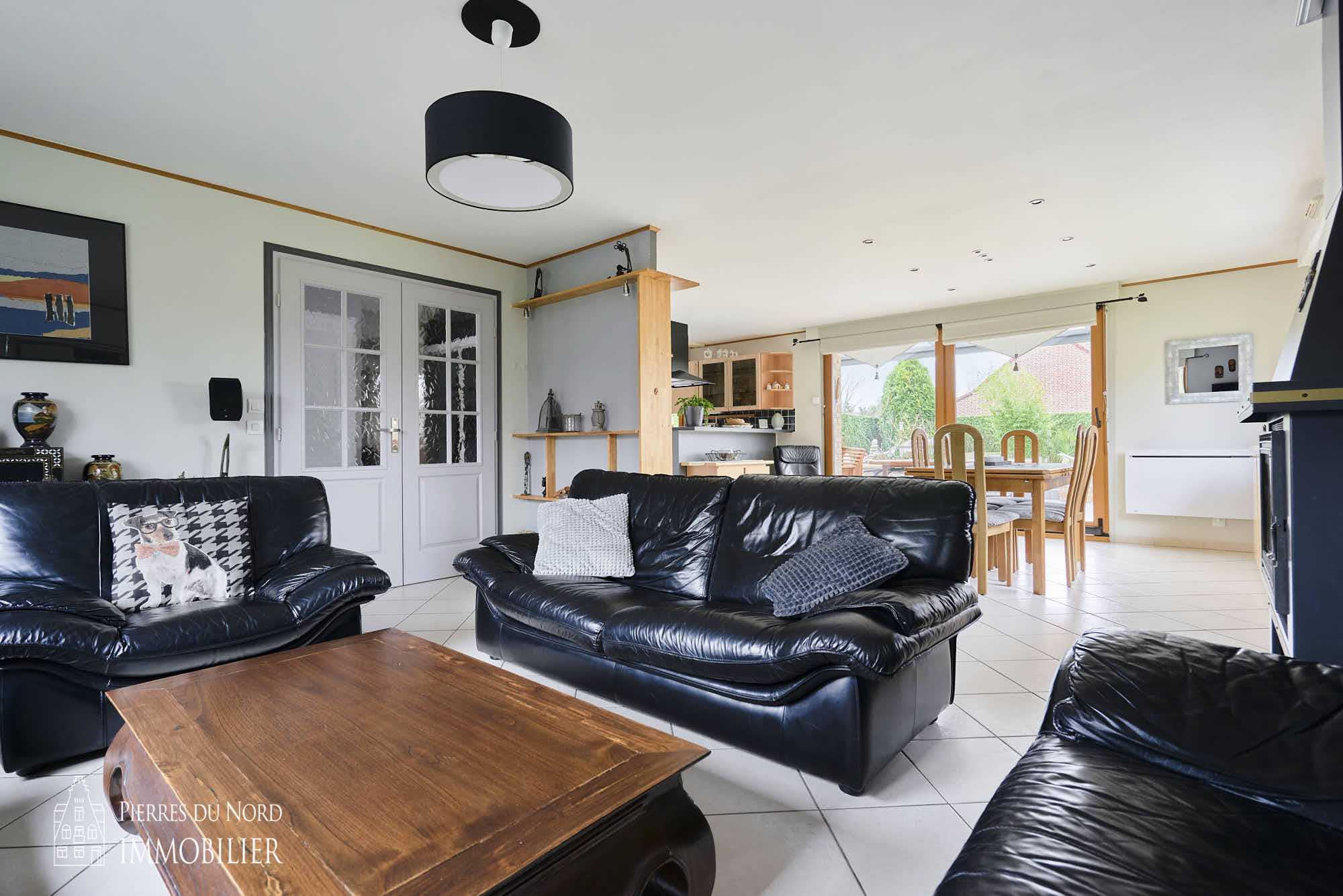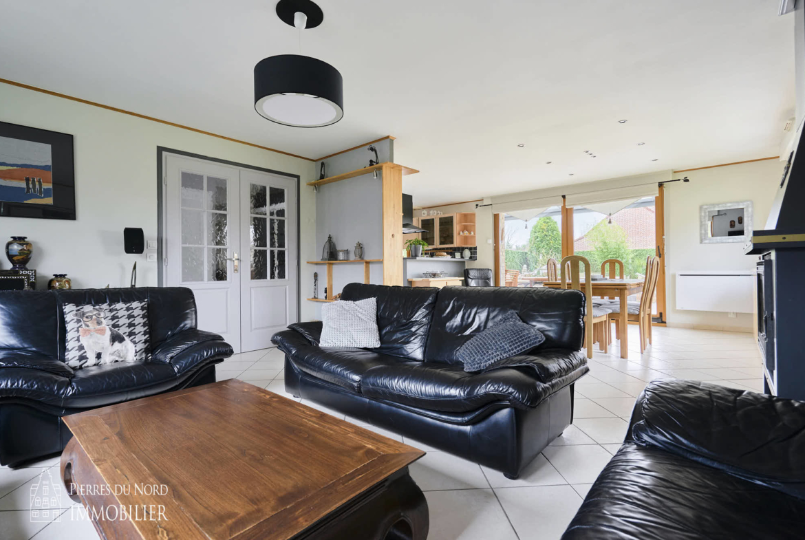 Une maison de famille soignée sur 1000M2 de terrain arboré et paysagé. A 10mm en voiture du centre de COUTICHES, dans un environnement résidentiel, la maison offre 120 M2 de surface habitable. Construite en 2001 par ses propriétaires actuels, le rez de chaussée se compose d’une cuisine ouverte sur la pièce de vie avec cheminée. Soit 52 M2 donnant sur une vaste terrasse. Cellier, jardin d’hiver, abri bois jouxtent la cuisine. A l’étage: 4 chambres dont la plus grande de 13 M2. TF de 956 euros. Orientation sud.