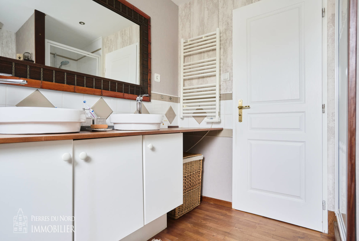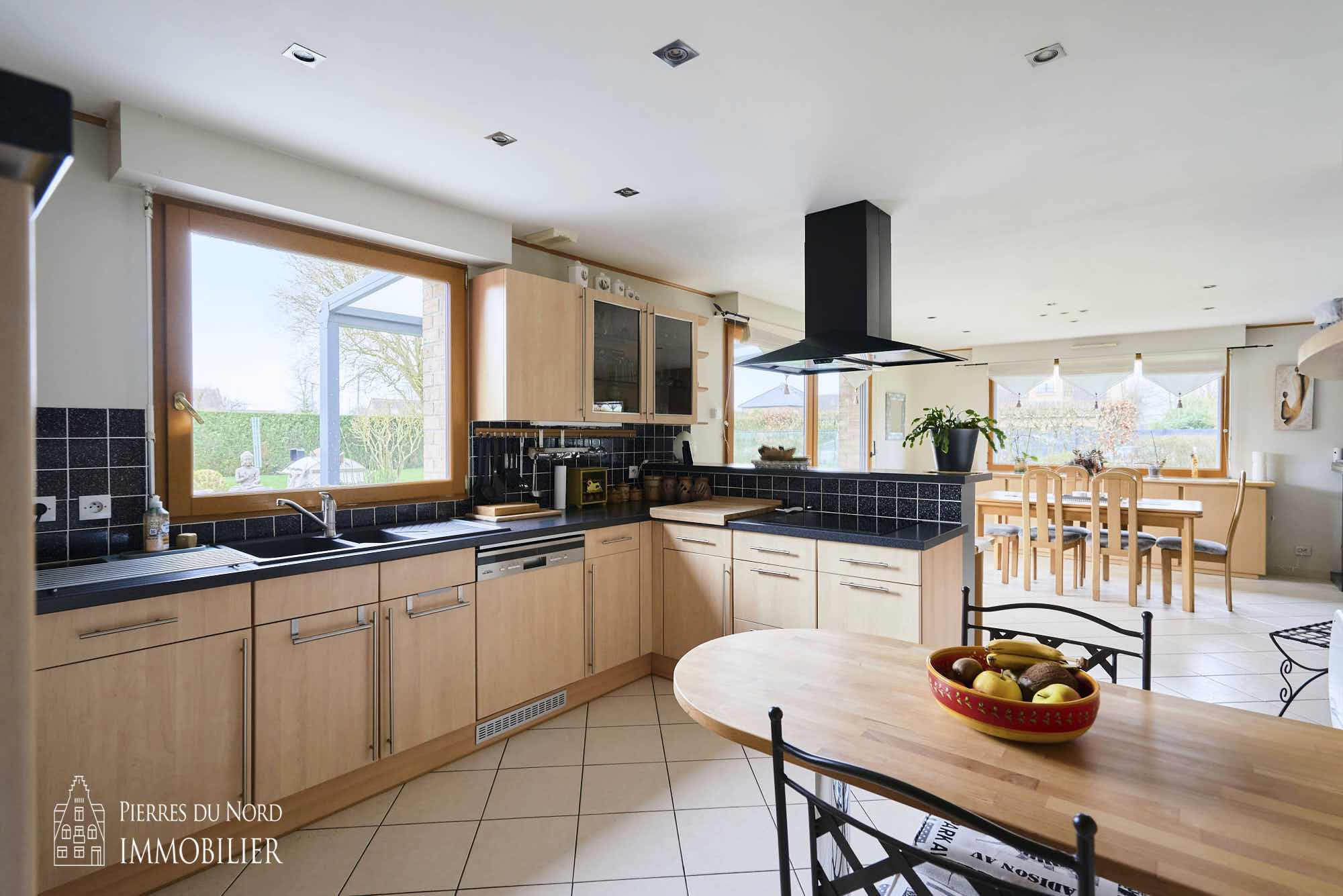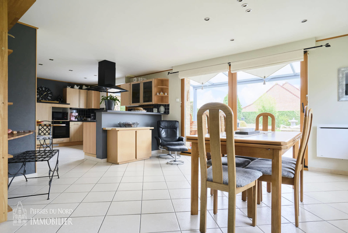 Une maison de famille soignée sur 1000M2 de terrain arboré et paysagé. A 10mm en voiture du centre de COUTICHES, dans un environnement résidentiel, la maison offre 120 M2 de surface habitable. Construite en 2001 par ses propriétaires actuels, le rez de chaussée se compose d’une cuisine ouverte sur la pièce de vie avec cheminée. Soit 52 M2 donnant sur une vaste terrasse. Cellier, jardin d’hiver, abri bois jouxtent la cuisine. A l’étage: 4 chambres dont la plus grande de 13 M2. TF de 956 euros. Orientation sud.