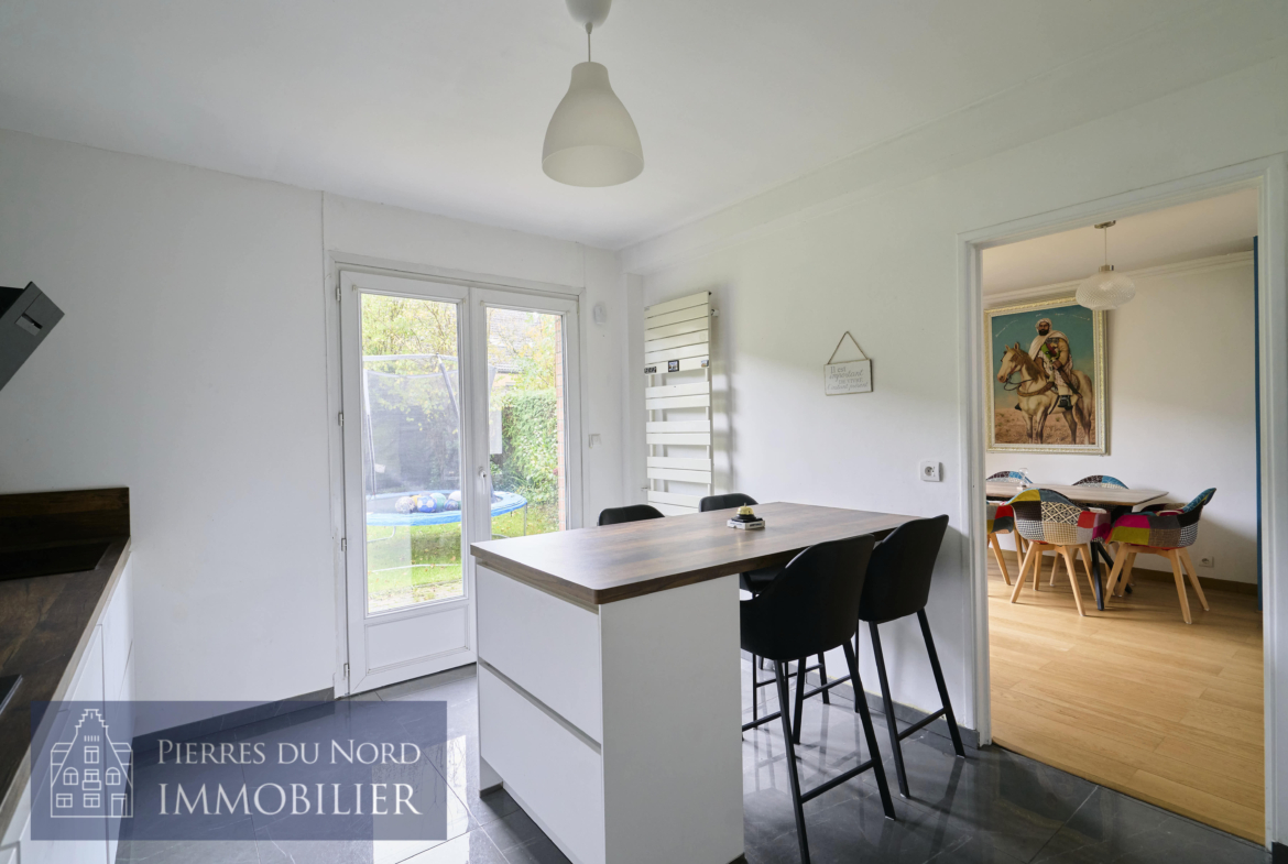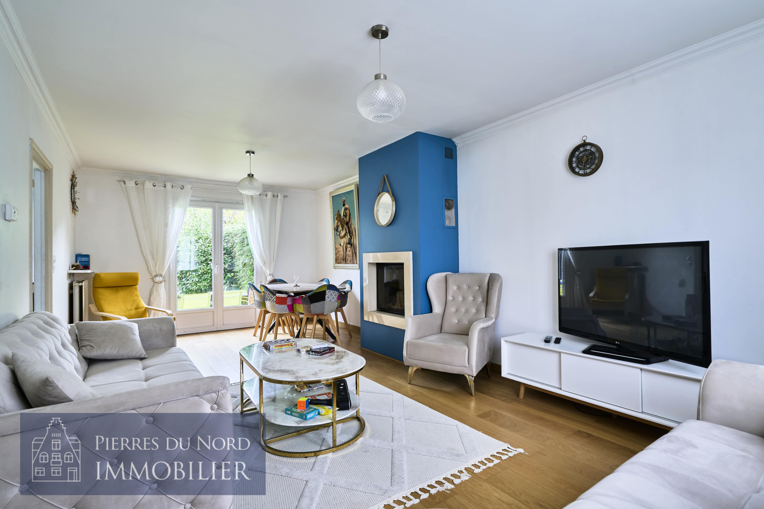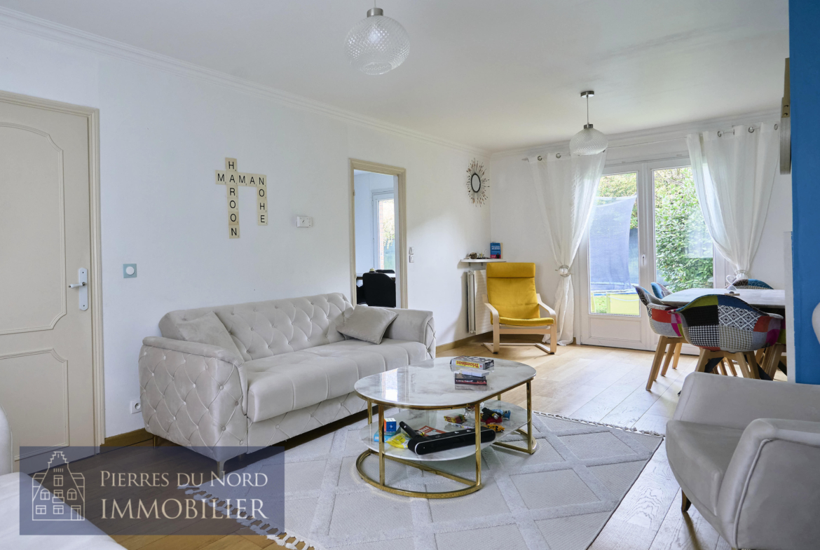 Séjour lumineux avec cuisine séparée toute équipée. Garage et buanderie. 136,65 M2 surface totale.